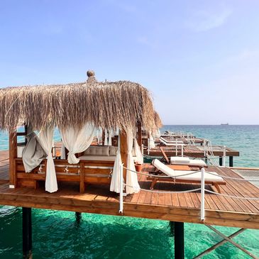 The beach is very well kept and sun loungers are complimentary.