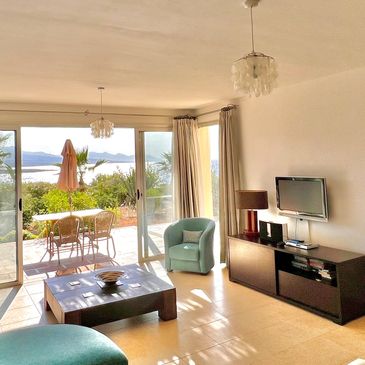 The villa benefits from a large fully integrated open plan kitchen as well as comfortable living space and a large private patio.